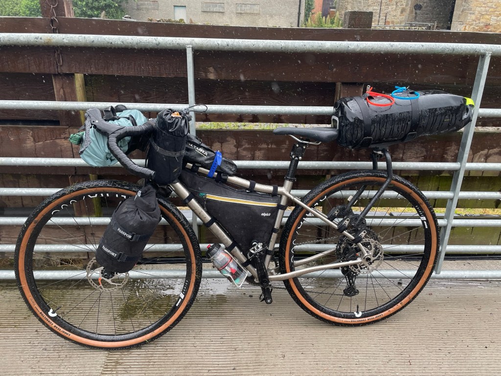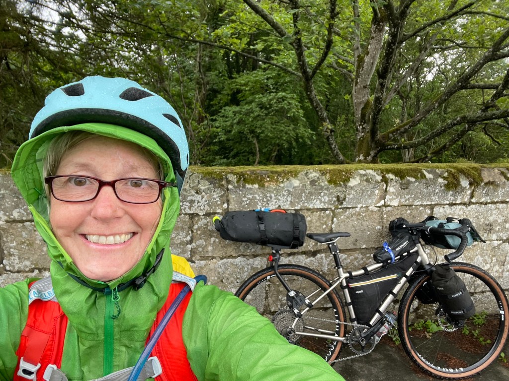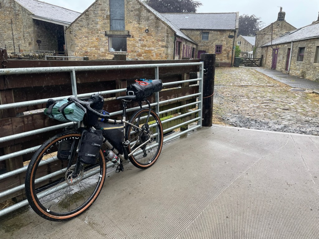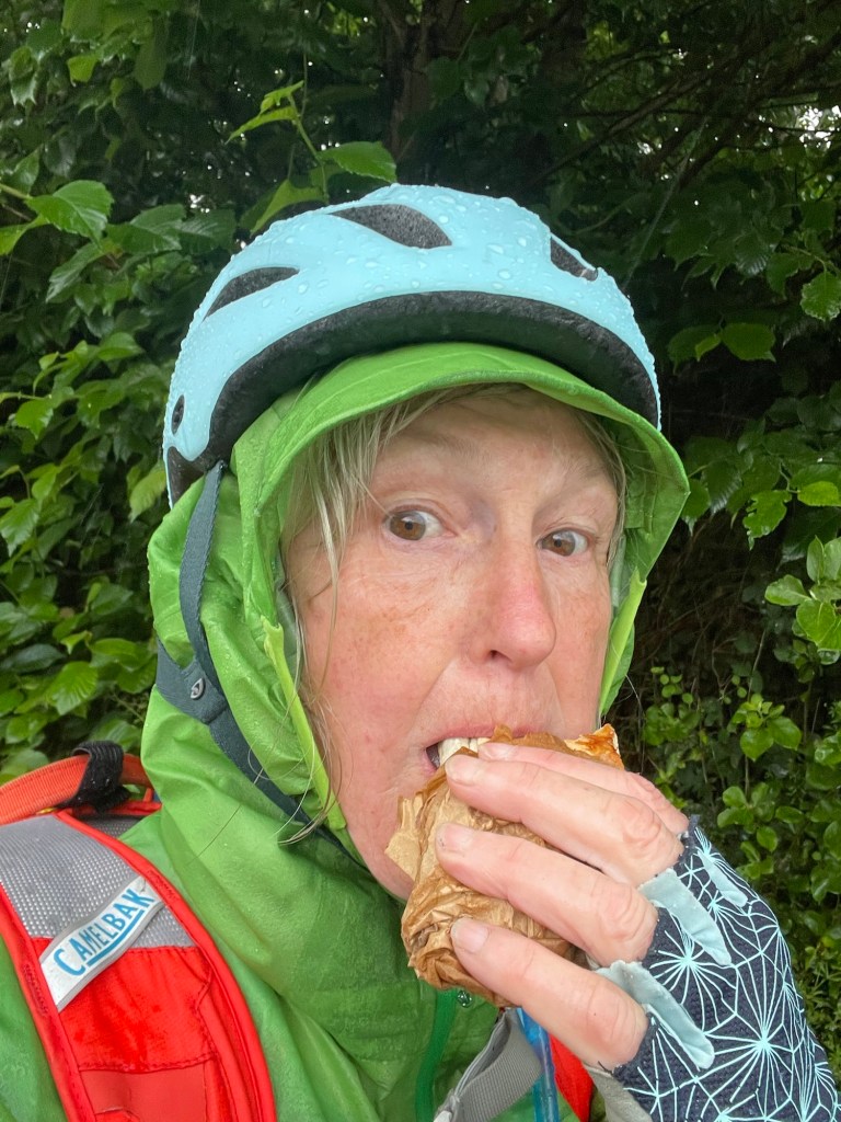 I had a cosy night and woke up to a damp but not raining day. I went to a cafe and had coffee and breakfast and a think. I decided that riding the sandstone way in the wet would not be fun so plotted a route on the sustains 68. I got back to the tent just as the rain started, managed to get everything packed up without it getting wet. Apart from the tent! I set off nice quiet roads but pouring down. Eventually got to a country inn where I took refuge. The people there were wonderful, put my coat in the boiler room and gave me fluffy towels. I ended up staying there all afternoon the rain got worse and in the end Chris came and rescued me. I have spent a nice few days with him and Sue.