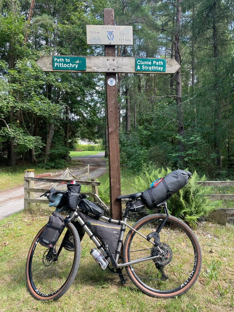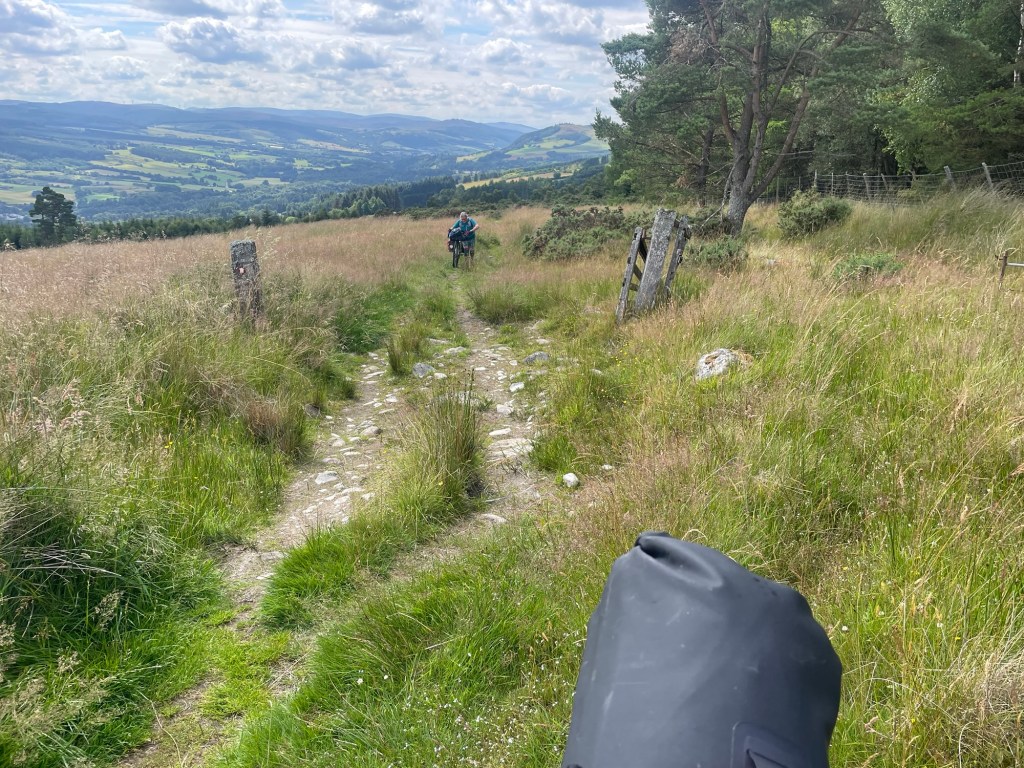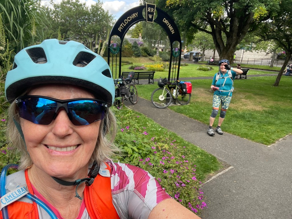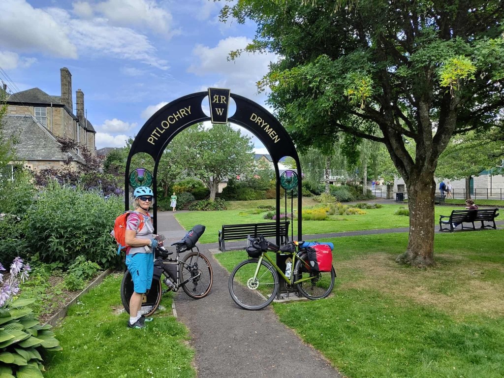 After a great breakfast and a coffee in a lovely coffee shop recommended by Helen we set off initially along a brilliant single track along the river and a disused railway….all was pretty level. Then came the hill. A lot of pushing ….a lot of but then a lovely decent down to Pitlochry. We did it.