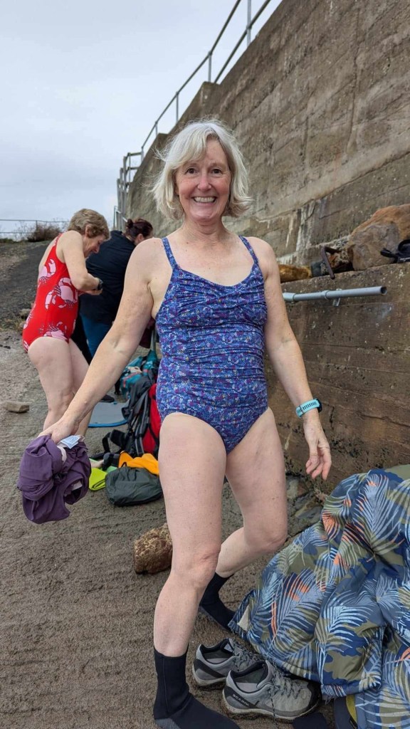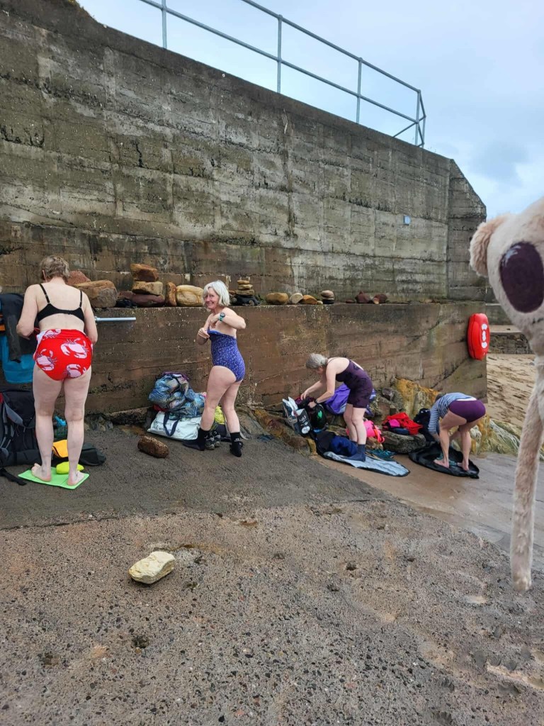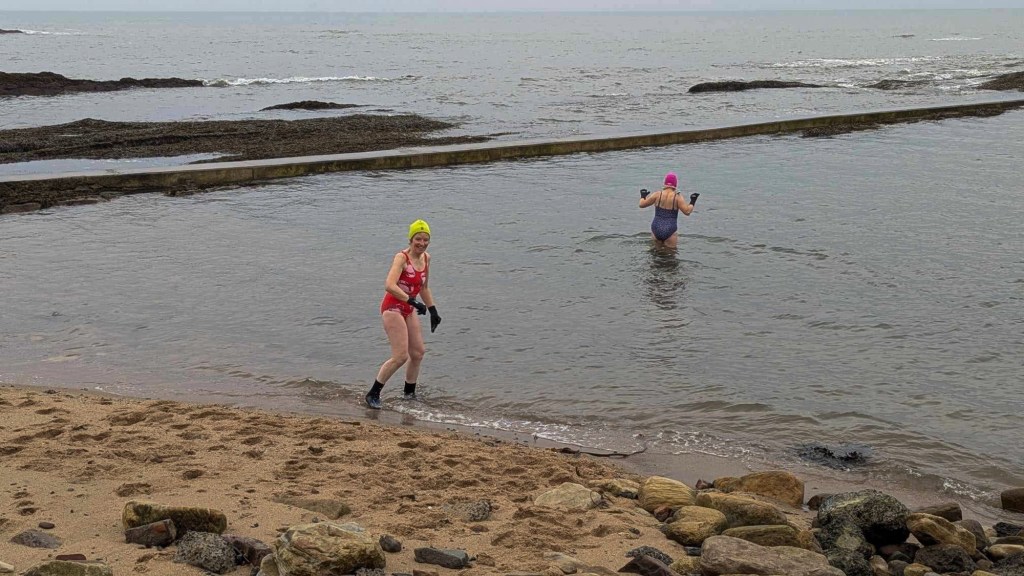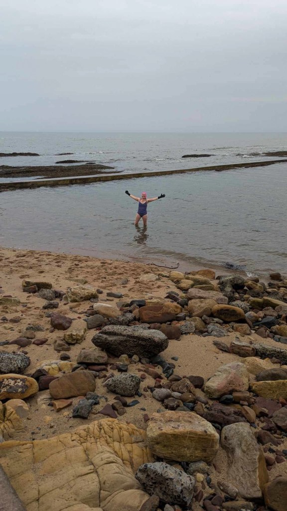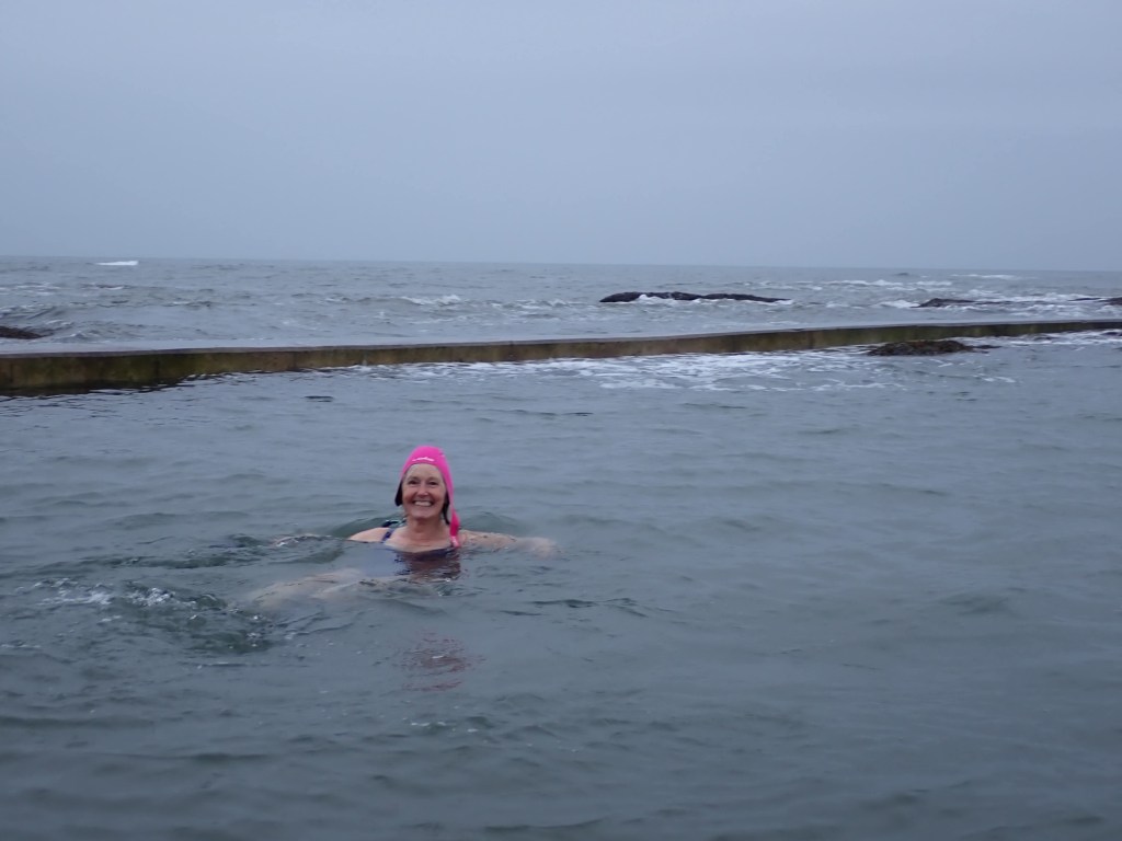 We walked from the hotel to Pittenweem tidal pool and arrived only just in time. The sea was beginning to come over the sides and by the time we had got back up to the shelter after the swim it had disappeared. The water was not as cold as I was expecting and I actually managed to actually swim a bit. I was in for about 7 mins.