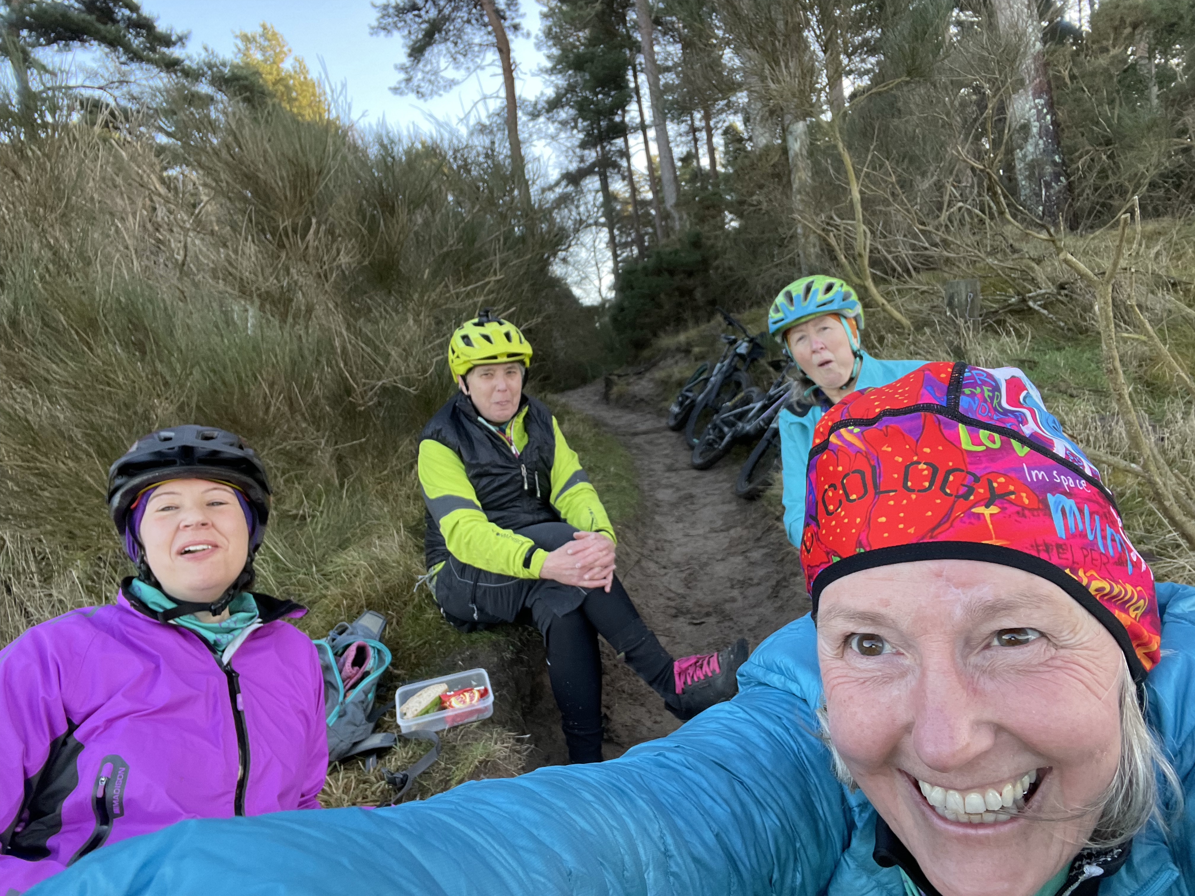 It was a very windy birthday ride. Some great single track, lots of mud and great company from Vicky, Dot, and Chris. Chris made a nice pudding for us with custard when we get back to the vans. When I got home I checked strava and it was in 2013 that Roger and I rode that way. I remember going over the handle bars on a bit of a drop. Which I found again today but managed to swerve