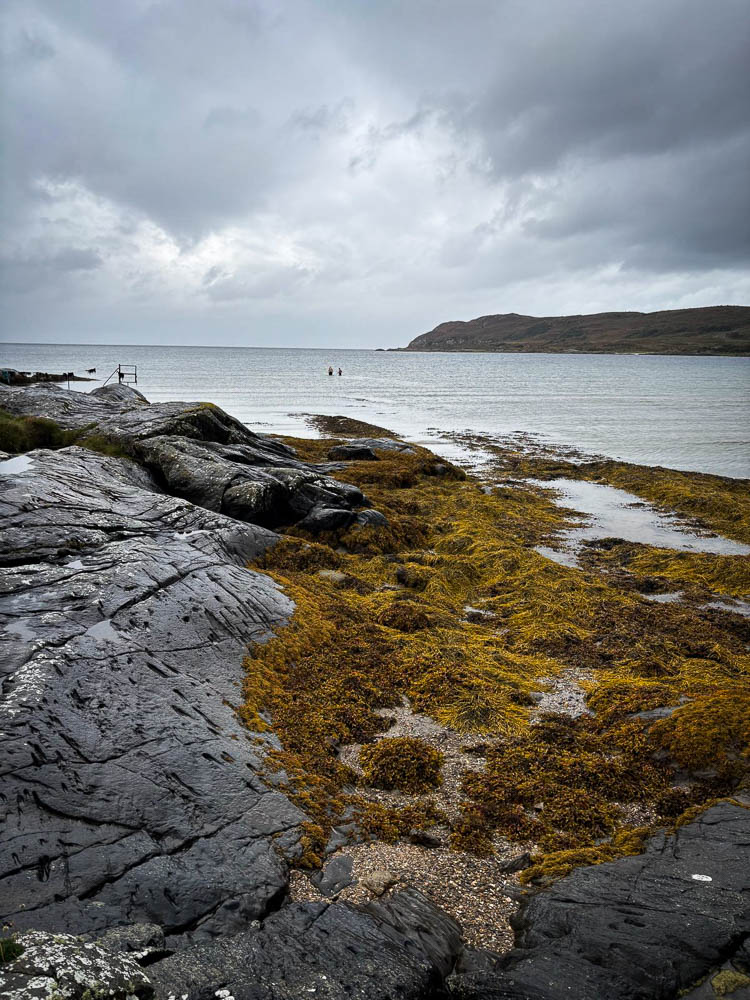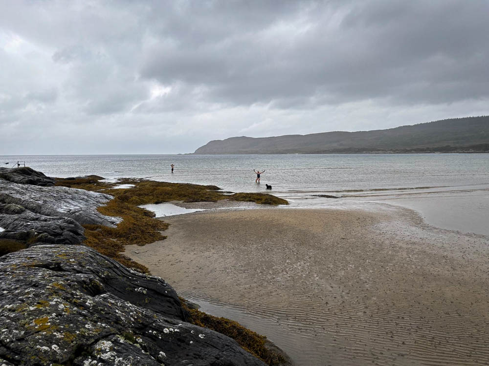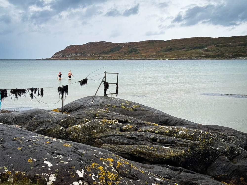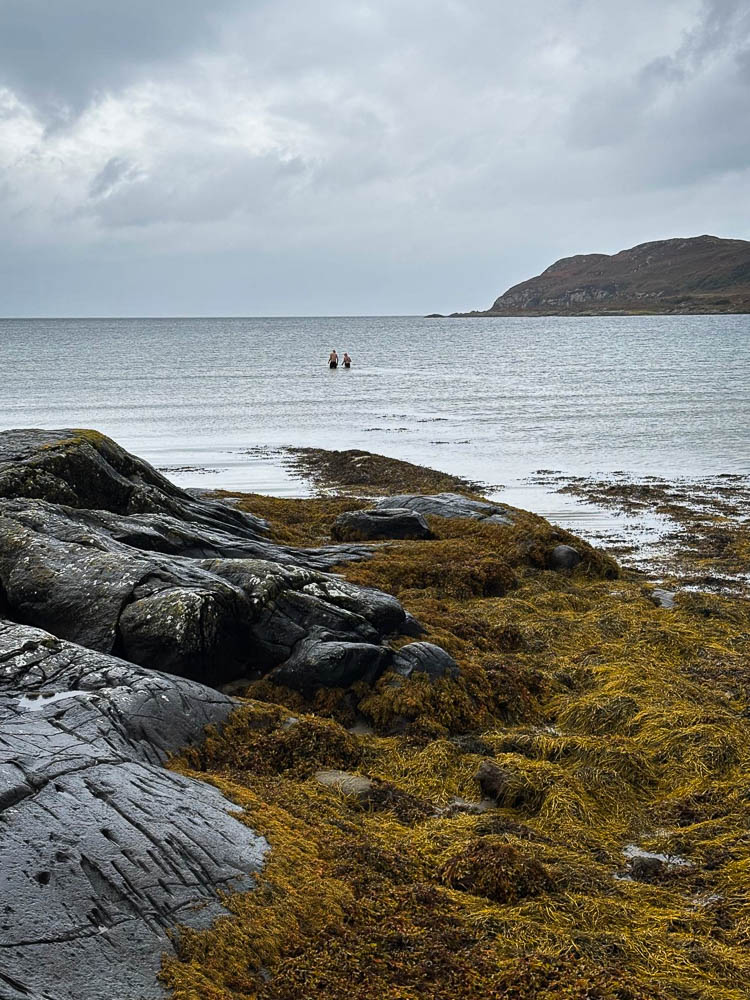 Then we went for a swim in the sea at Bagh na Dòirlinne. 207m which is in Alice’s book. Started pouring just as we got out! Only rain all day.