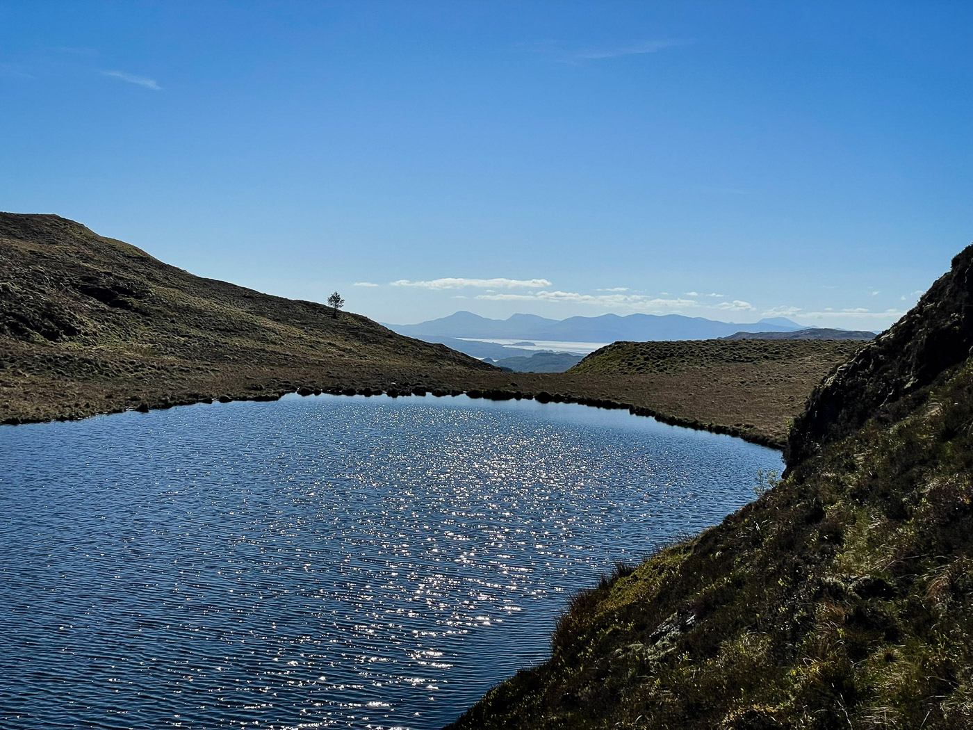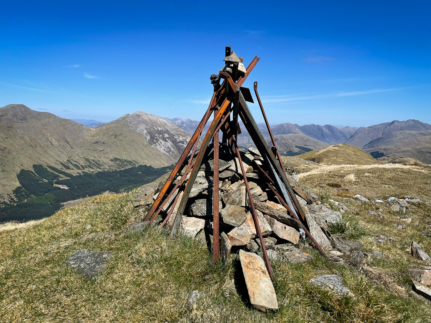 I had been to visit Kenny in the marina while he was working on his new boat! 🤦♀️. This hill had been on my list for a while. A nice ride up which was all up hill on good tracks so looked good for a nice descent. Once the track deteriorated I left the bike and walked first up the track and then open hill side to the top. Fantastic views towards Glencoe and the other way the sea and islands. I nearly had a dip in the little Lochan but it was a tad windy.