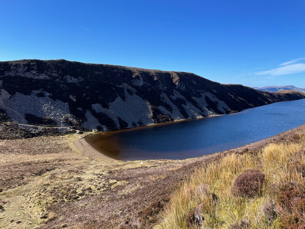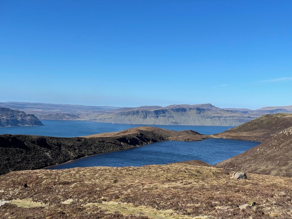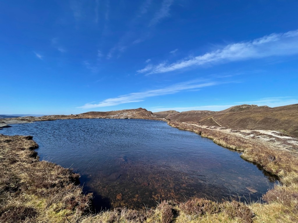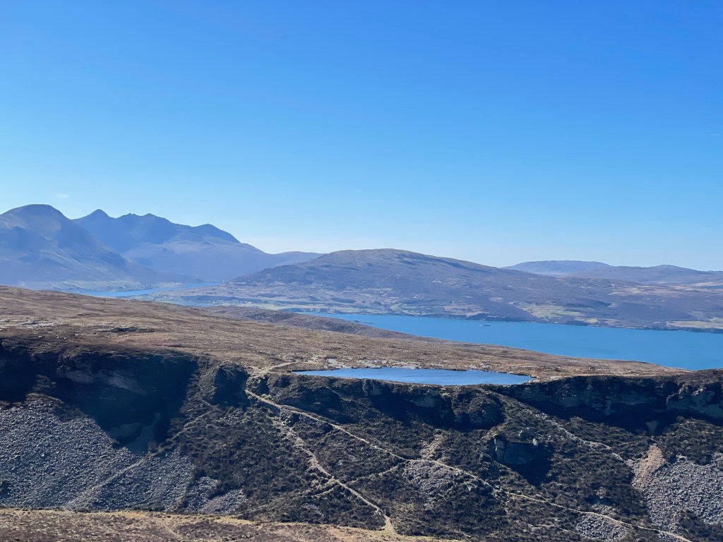 I parked up at a lovely spot by the old iron ore mine. This was the start of my walk. A bit longer than the other one but I thought more interesting. Another hot day but with a nice breeze. Up the side of the street then up past a potential swim spot for Janet. But way too deep and dark I thought. A last push up to the top. A most amazing hill with superb views. I took a deviation on the way down to check out more lochs. Found a lovely one. I may even go in myself but not today.